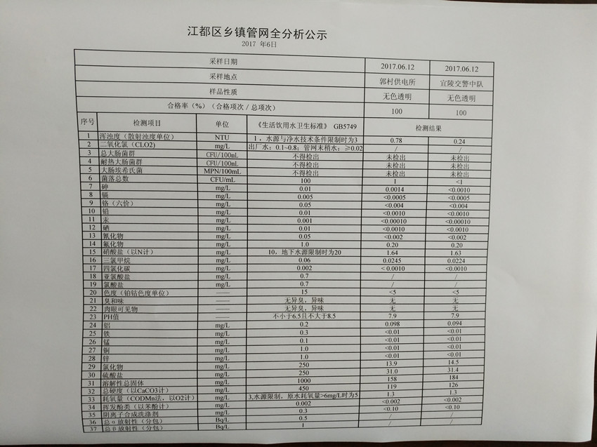 水質(zhì)公示