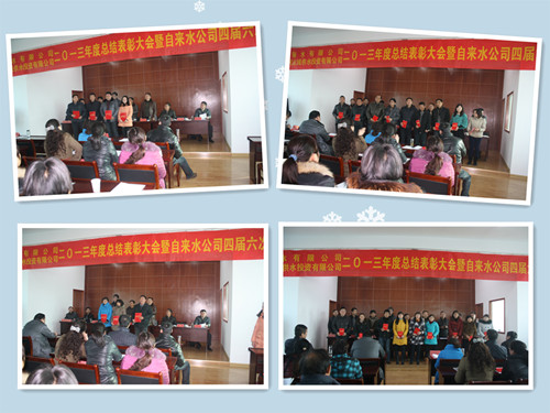 元月20日,公司召開2013年度總結表彰大會暨四屆六次職代會,會上,劉書政總經理作了題為《銳意進取 開拓創新 共鑄江都城鄉供水事業新輝煌》的報告,認真總結了2013年工作情況,具體明確了2014年目標任務,大會還組織對2013年度自來水公司、惠民公司先進集體和先進個人進行了集中表彰。區城鄉建設局副局長許金林出席會議,對公司全年工作給予了肯定,指出了公司今后工作的重點和努力的方向,并對廣大供水干部職工提出了殷切希望和要求。